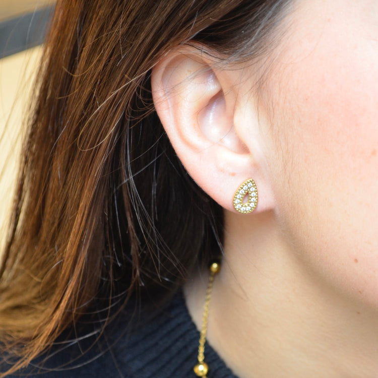 Pendientes mini drops de acero inoxidable con circonitas, resistente al agua. Los pendientes perfectos para el día a día.